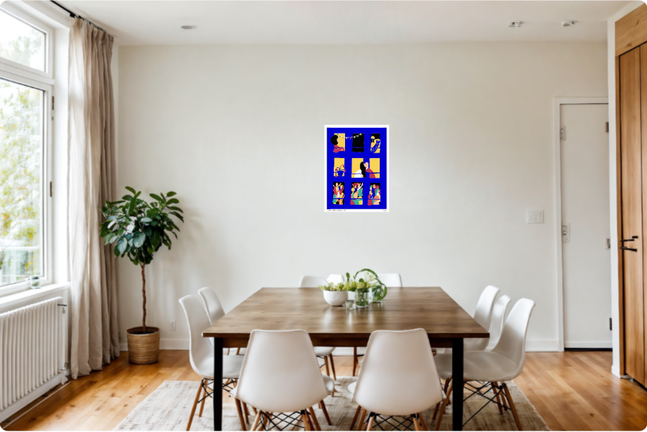 The intensity of the colors and the almost childish outline transmit messages in a light and joyful way. The story and the colors are not fixed in time and are bound to evolve. The interpretation proposed for each creation is always part of a precise temporality and can, like colors, adopt new shades over time. Digital art allows this essential freedom.