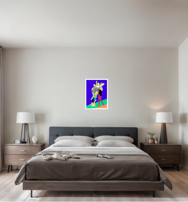 The intensity of the colors and the almost childish outline transmit messages in a light and joyful way. The story and the colors are not fixed in time and are bound to evolve. The interpretation proposed for each creation is always part of a precise temporality and can, like colors, adopt new shades over time. Digital art allows this essential freedom.