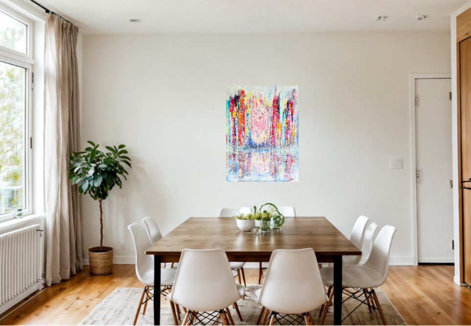 It is worth noting that Nicole Azoulay paints with a very small knife, regardless of the size of the canvas. She begins each work without any prior idea of the subject, shape or final colors.