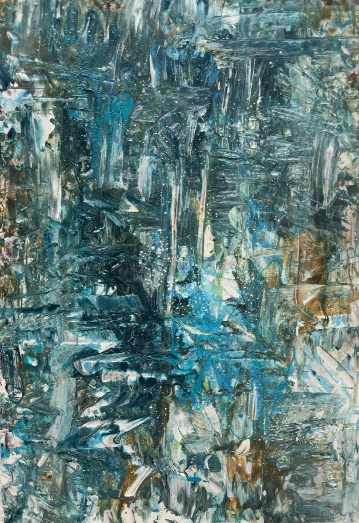 Acrylique sur toile recyclée de bois, année 2024, 40 x 55 cm.