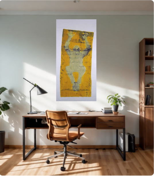 Les "Silhouettes" sont des empreintes de corps de personnes qui me sont familières. On ne se préoccupera pas ici du genre, du sexe mais de l'enveloppe extérieure. Chacun choisit sa position que j'ai ensuite tracée sur un rouleau de papier. J'ai peint ensuite à partir de ce croquis. Voici une série dans laquelle chacun peut s'imaginer, rêver, se projeter.