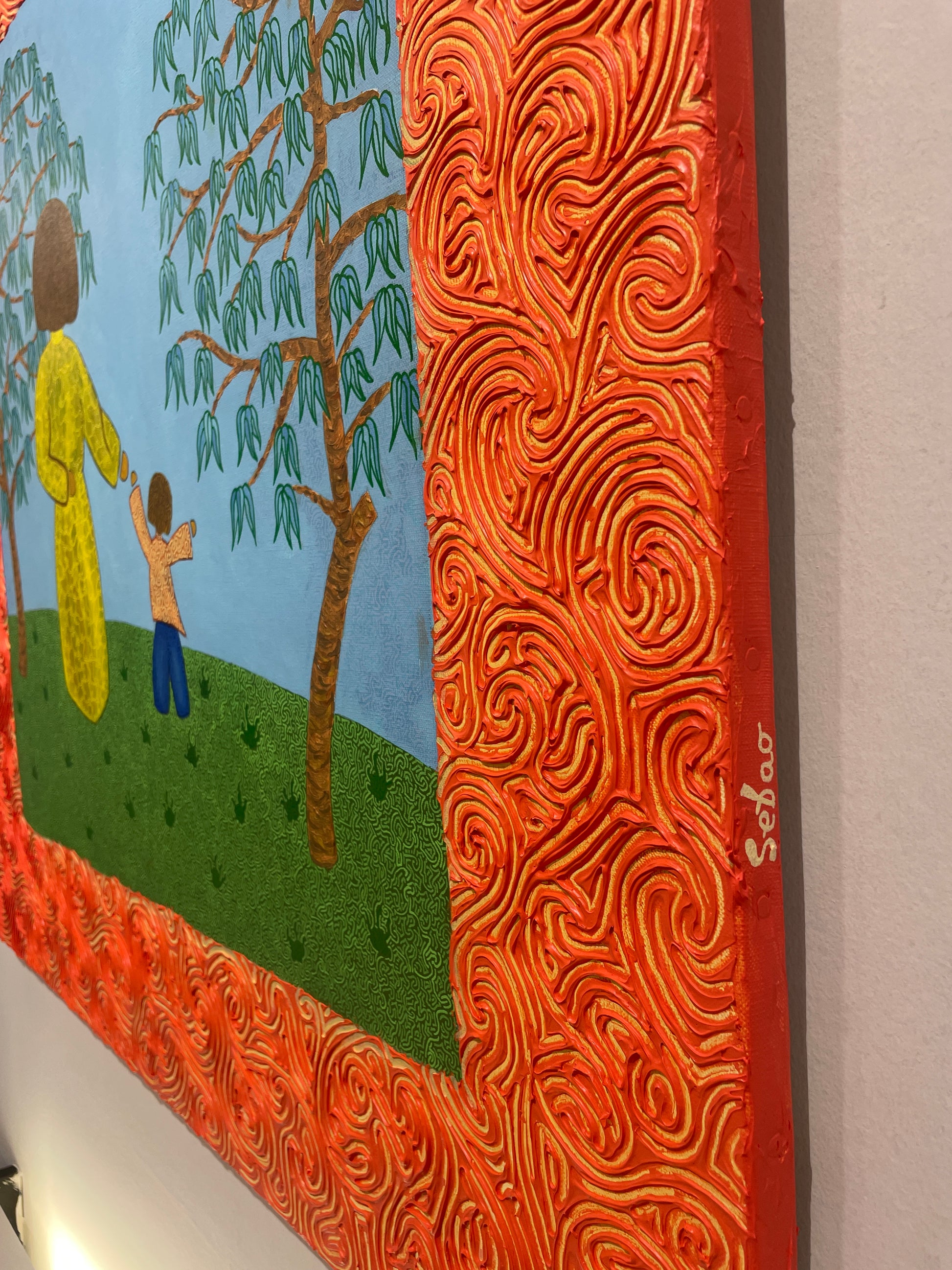 Sebao est adepte d’activités créatives, surtout le dessin, depuis son plus jeune âge. Cette pratique évolue et l’acrylique devient le médium de choix, l’exploration des textures amène l’artiste à incorporer d’autres éléments comme le bois, le papier, la résine ou la feuille d’or dans ses oeuvres.