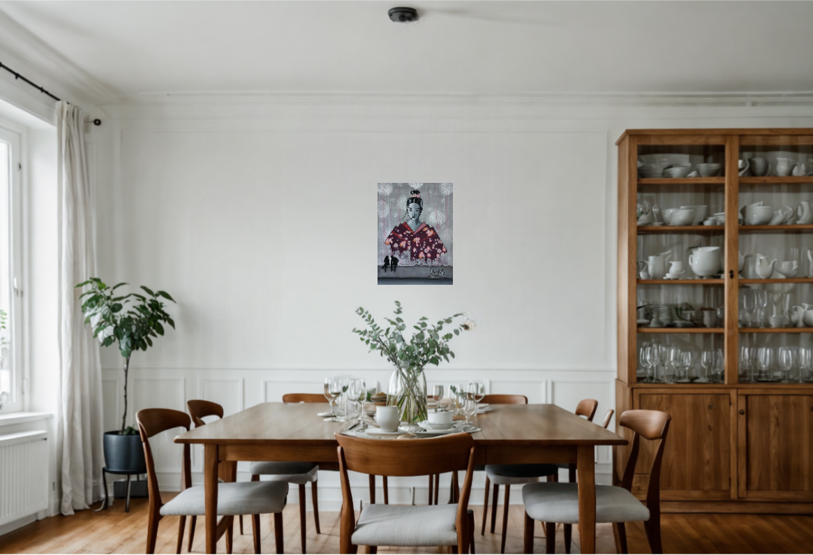 Osaka est une œuvre qui capture l’essence vibrante et moderne de la métropole japonaise. Par ses lignes précises et sa composition équilibrée, elle évoque à la fois la dynamique urbaine et la profondeur culturelle de la ville par le portrait d'une femme.