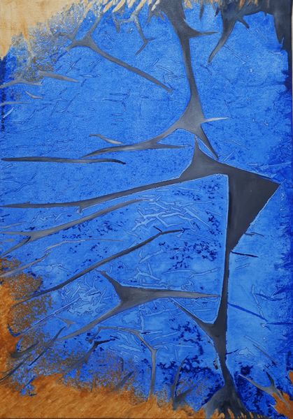 Je vais inciser ce film plastique pour créer un nouvel espace artistique, puis remplir de peinture diluée l'espace compris entre la toile et le cellophane. Les coulures et volutes qui se formeront sont autant de paysages fantastiques, de cartes mentales. Une géographie onirique apparaît dès le retrait du cellophane.